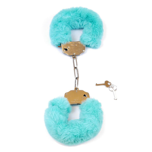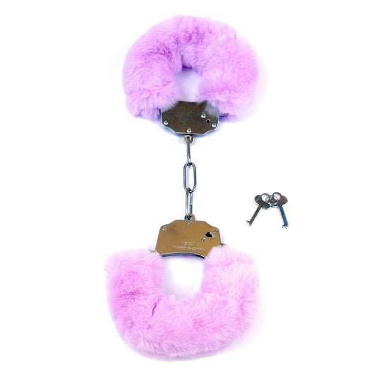 Kajdanki metalowe z futerkiem bondage bdsm fiolet
